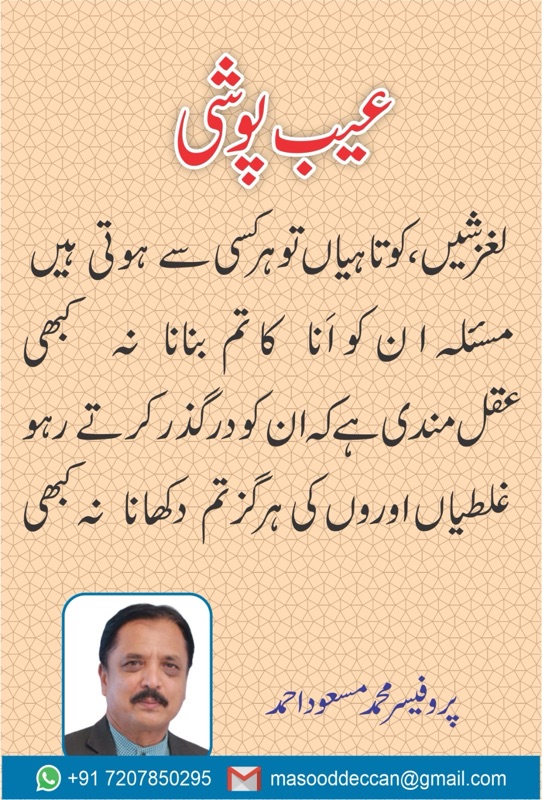 قطعہ "عیب پوشی" پروفیسرمحمدمسعوداحمد۔ حیدرآباد Get link Facebook X Pinterest Email Other Apps By Prof Masood Prof Mohammad Masood Ahmed October 25, 2025 Get link Facebook X Pinterest Email Other Apps Comments