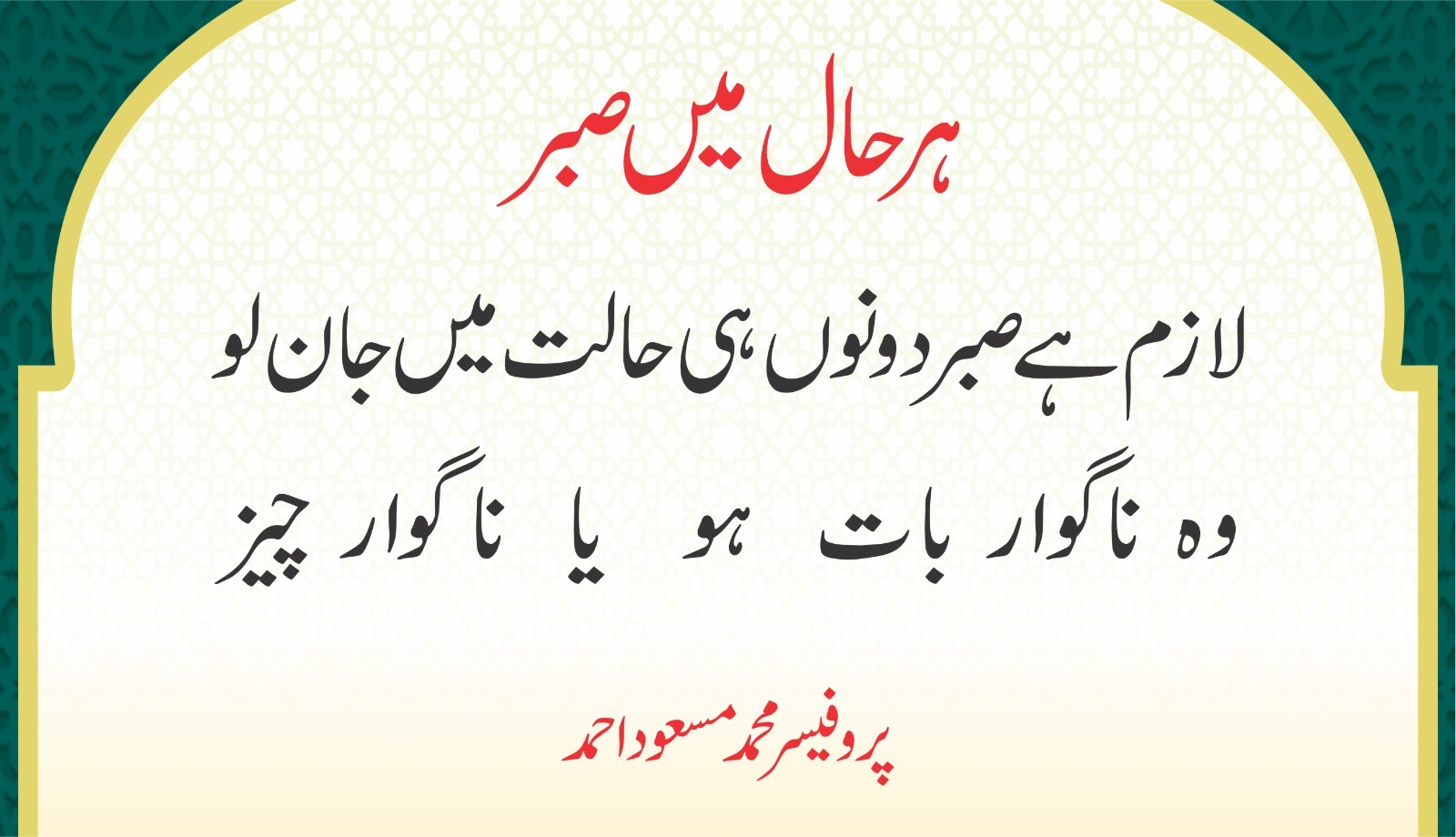 آج کا شعر-غصےپرصبر- از پروفیسرمحمدمسعوداحمد By Prof Masood Prof Mohammad Masood Ahmed October 27, 2025 Read more