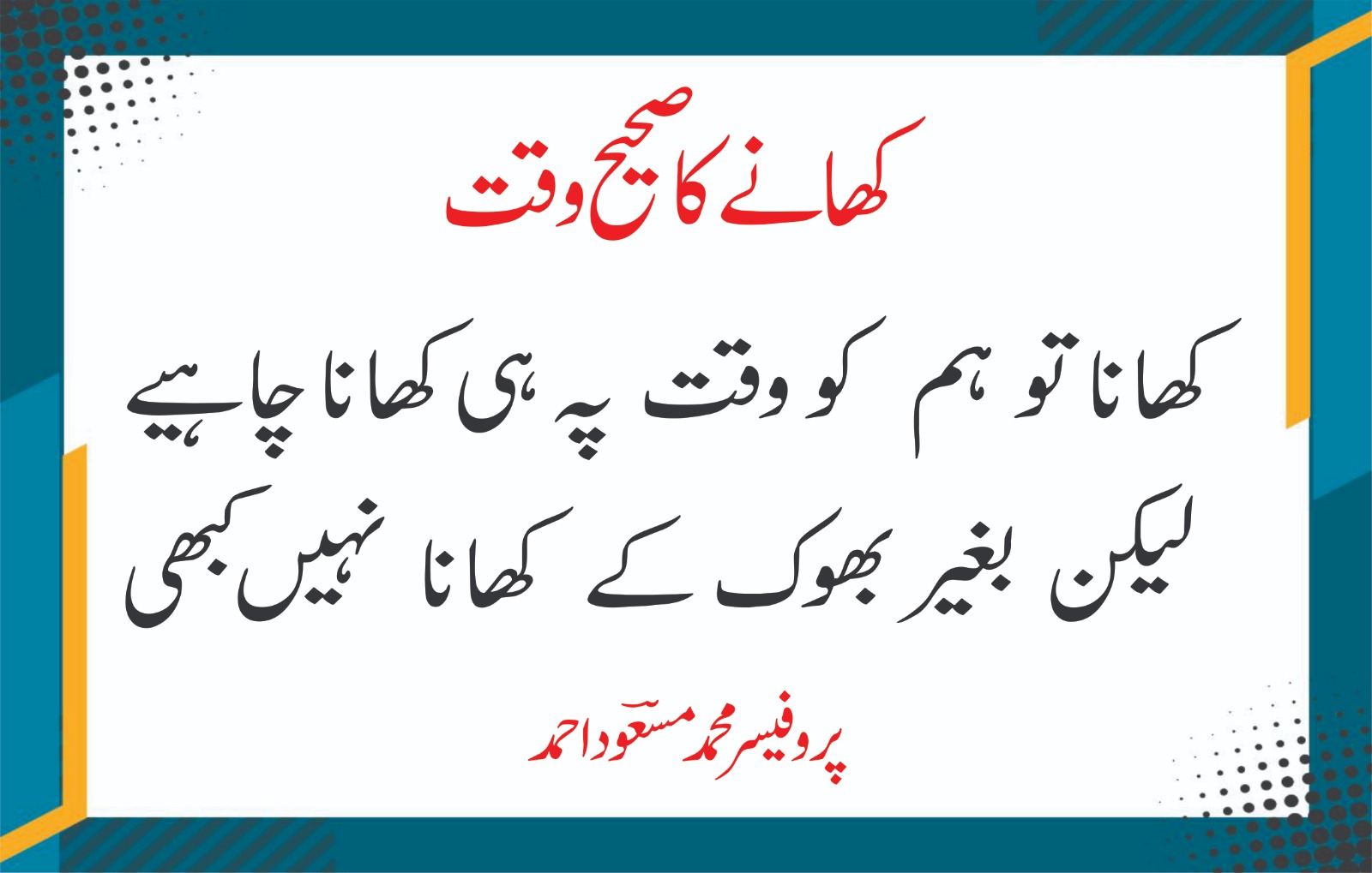 آج کاشعر-کھانے کا صحیح وقت- از پروفیسرمحمدمسعوداحمد Get link Facebook X Pinterest Email Other Apps By Prof Masood Prof Mohammad Masood Ahmed October 29, 2025 Get link Facebook X Pinterest Email Other Apps Comments محمد شبیر علی خان شبیر اسمارٹOctober 29, 2025 at 11:17 AM*کھانا کھانے سے زیادہ دوسروں کو کھانا کھلانے والے شاعر محترم بہت خووووووووب*ReplyDeleteRepliesReplyAdd commentLoad more... Post a Comment