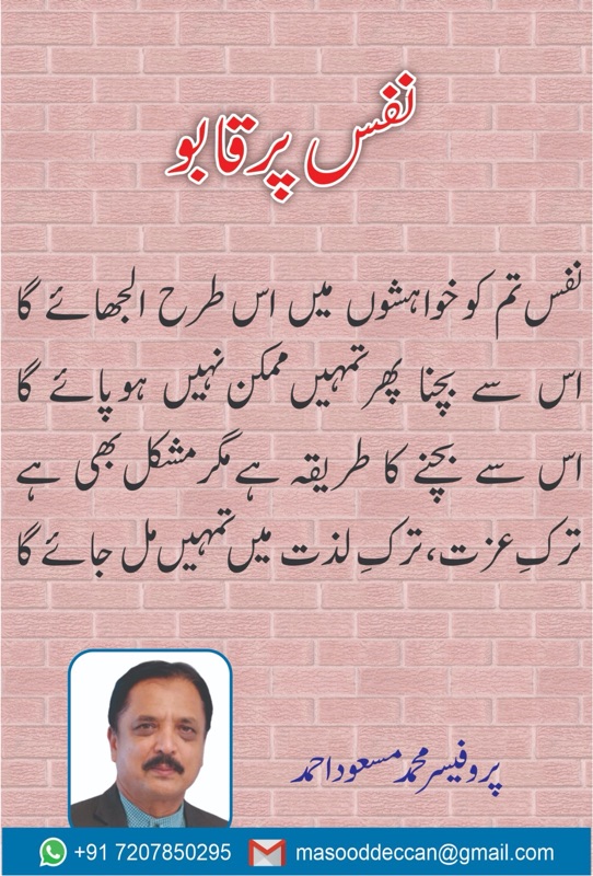 قطعہ "ؔ نفس پرقابو" پروفیسرمحمدمسعوداحمد۔ حیدرآباد Get link Facebook X Pinterest Email Other Apps By Prof Masood Prof Mohammad Masood Ahmed October 25, 2025 Get link Facebook X Pinterest Email Other Apps Comments