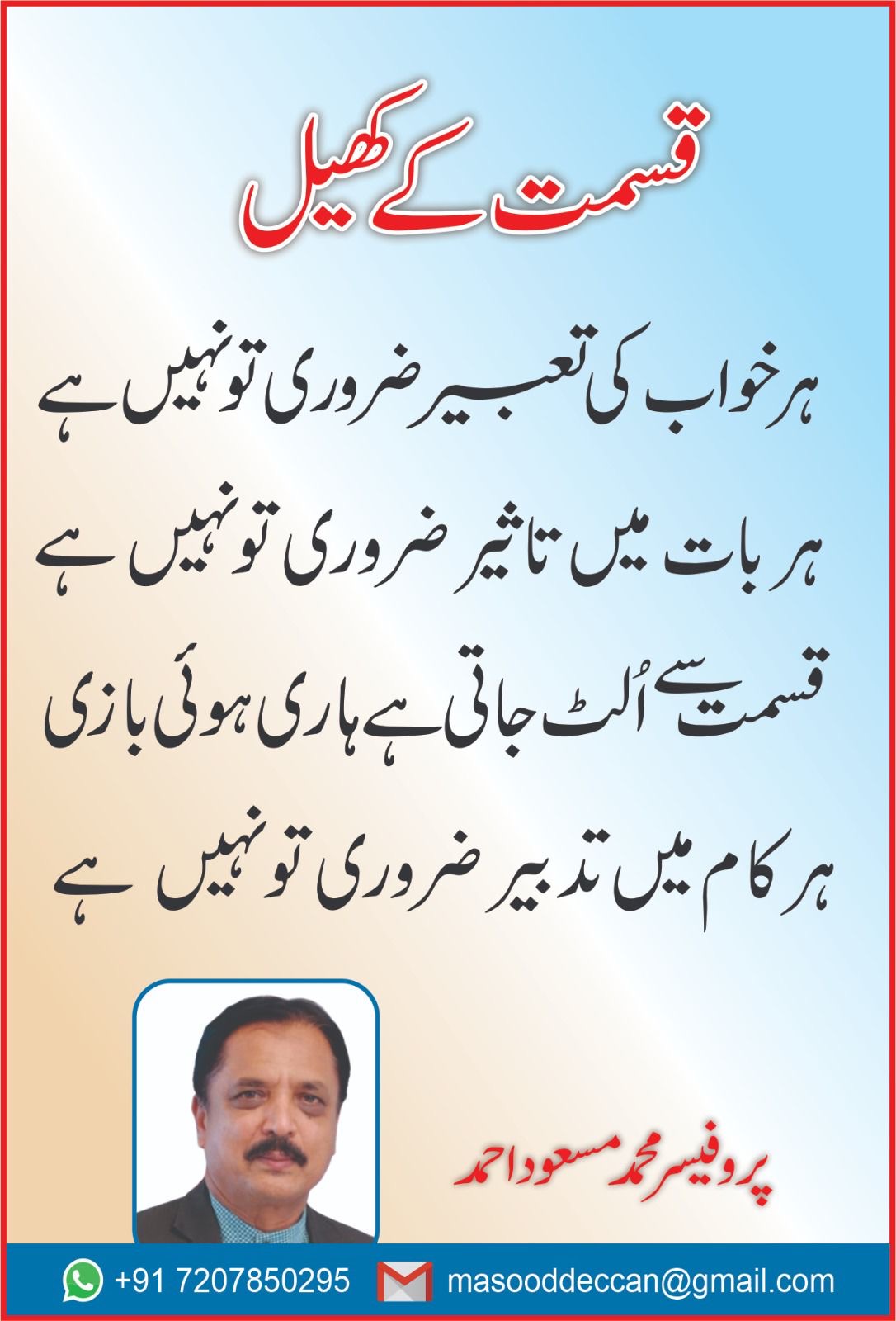 Dr Majid Deobandi, New Delhi Urdu Poetry By Prof Masood Prof Mohammad Masood Ahmed January 06, 2015 Read more